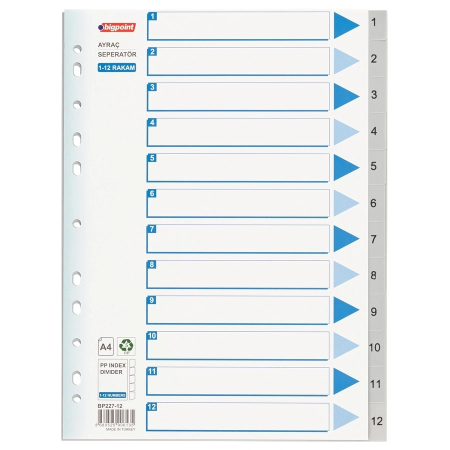 1-12 arası rakamlı ayraçlar ile A4 boyutundaki evraklarınızı klasör içerisinde ayırmanız için idealdir.