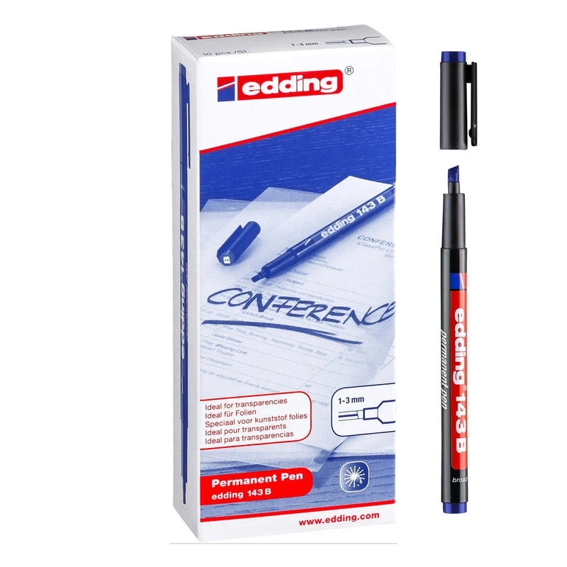Edding 143B Kesik Uçlu Permanent Kalem MAVİ 10'lu Kutu