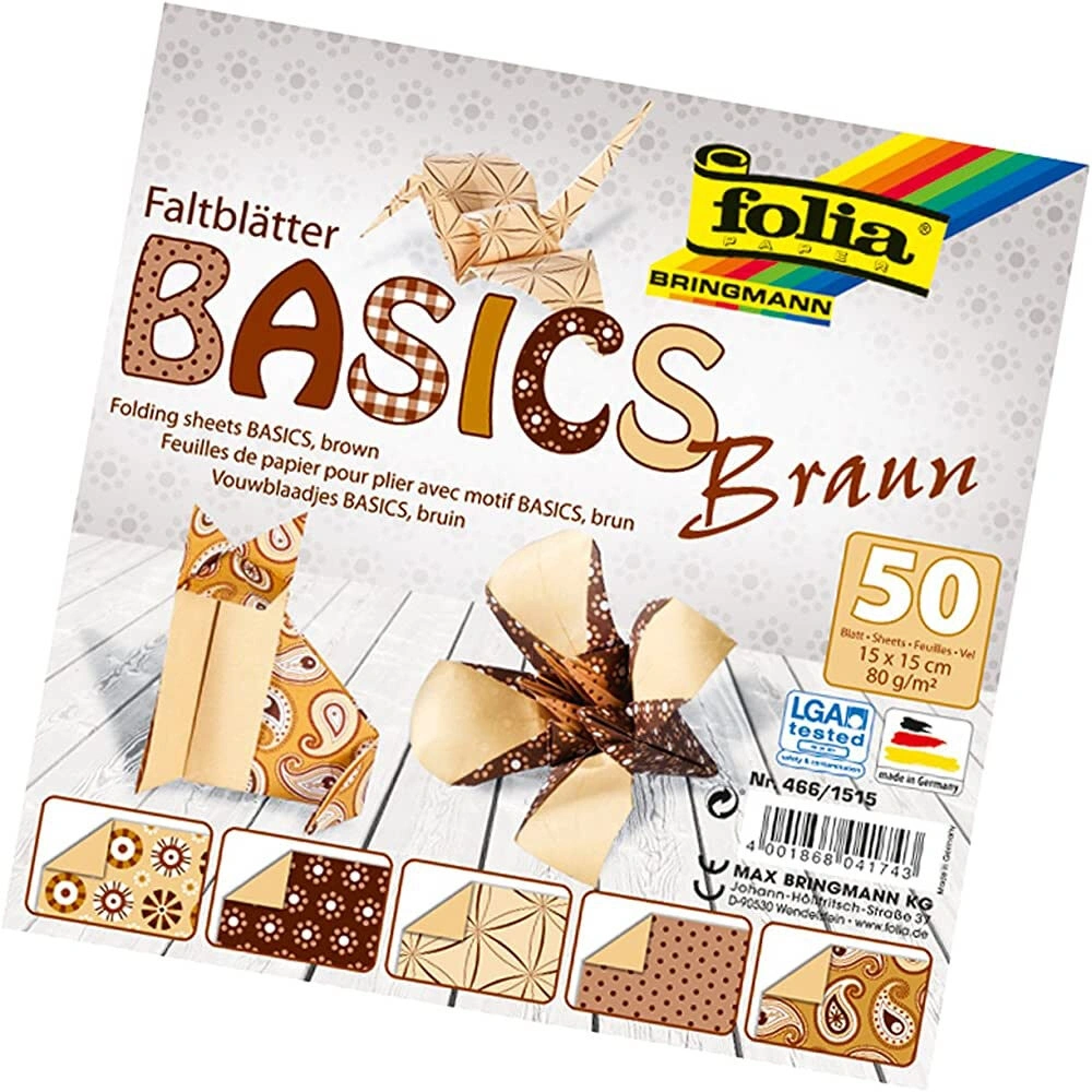 Folia Origami Kağıdı 15x15 cm. 5 Desen 50 Yaprak Basic Kahve