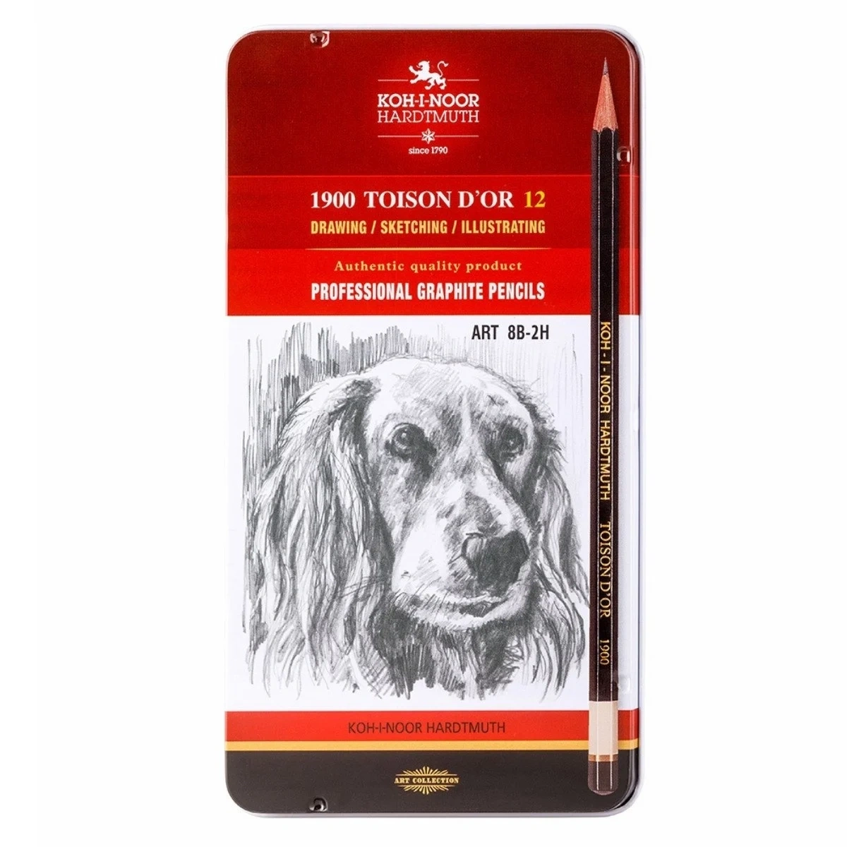 Seçilmiş 12 sertlik sınıfında grafit kurşun 8B'den 2H derecelerini, metal sac kutuda içerir.