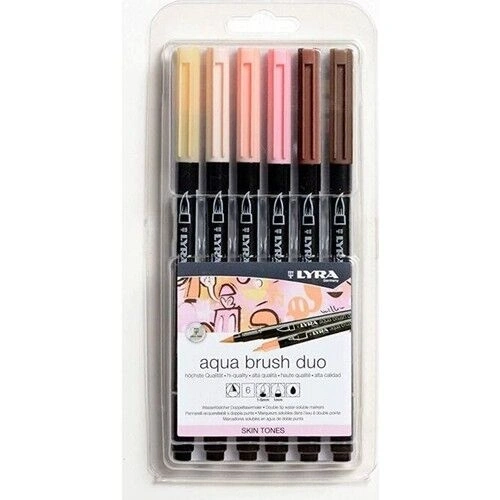 Lyra Aqua Brush Duo Çift Taraflı Fırça Uçlu Çizim Kalemi Seti 6 Renk SKIN TONES