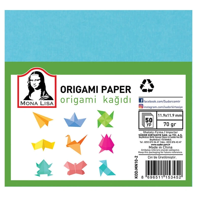 Südor Mona Lisa Origami Kağıdı 15x15 cm. 10 Renk 50 Adet