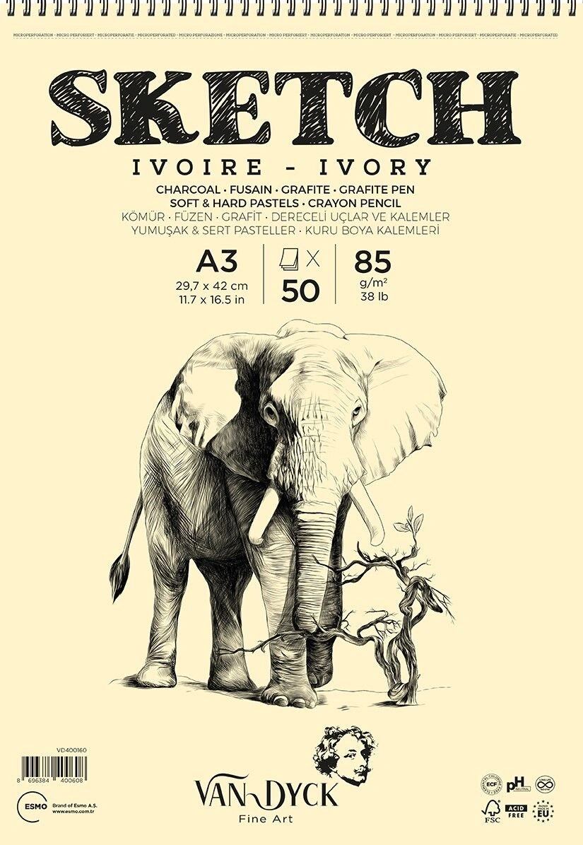 Van Dyck Sketch Ivory(Fildişi) Eskiz Çizim Defteri Üstten Spiralli 85 gr. A3 50 yp.